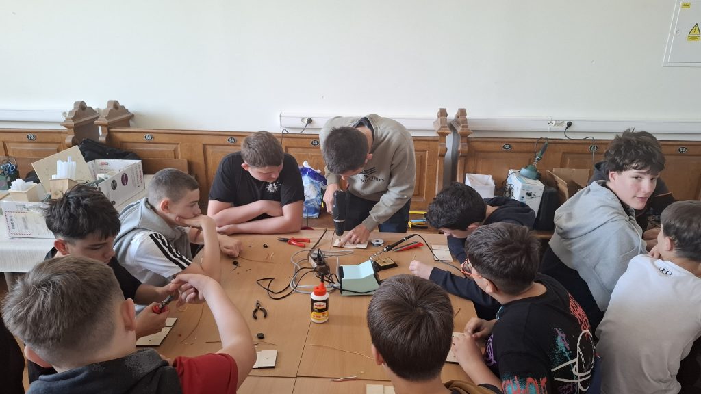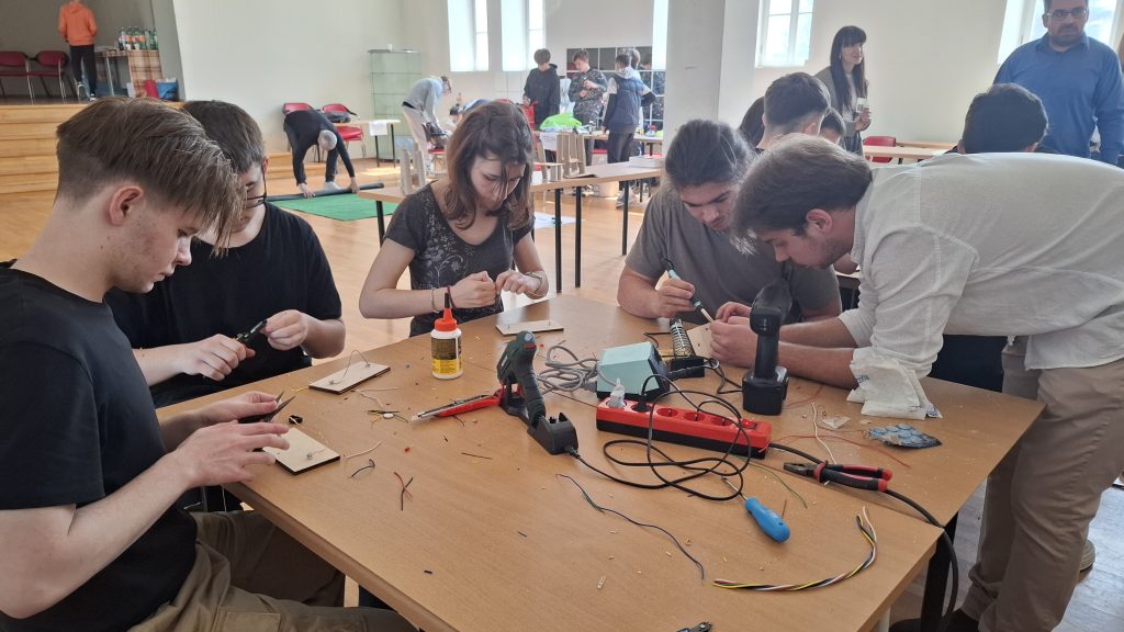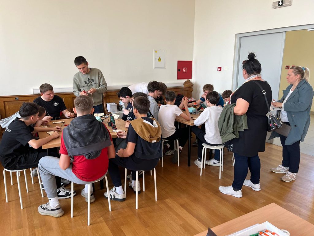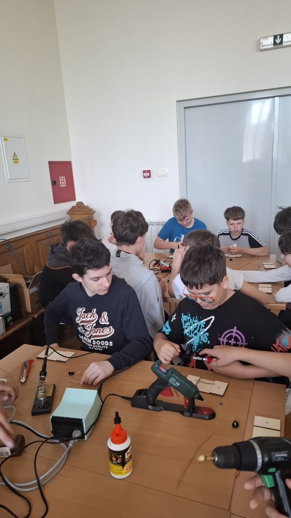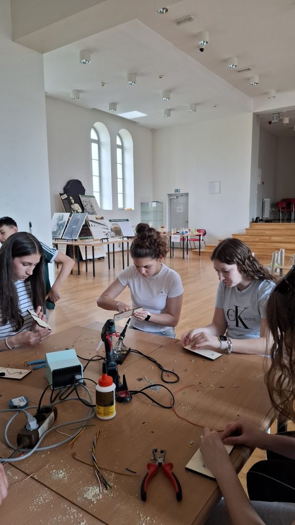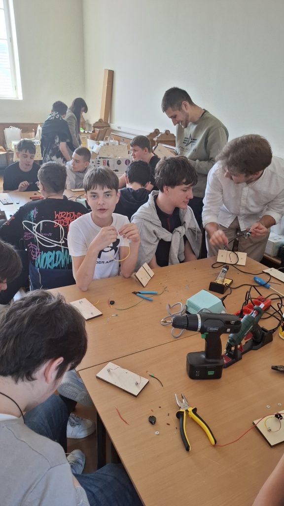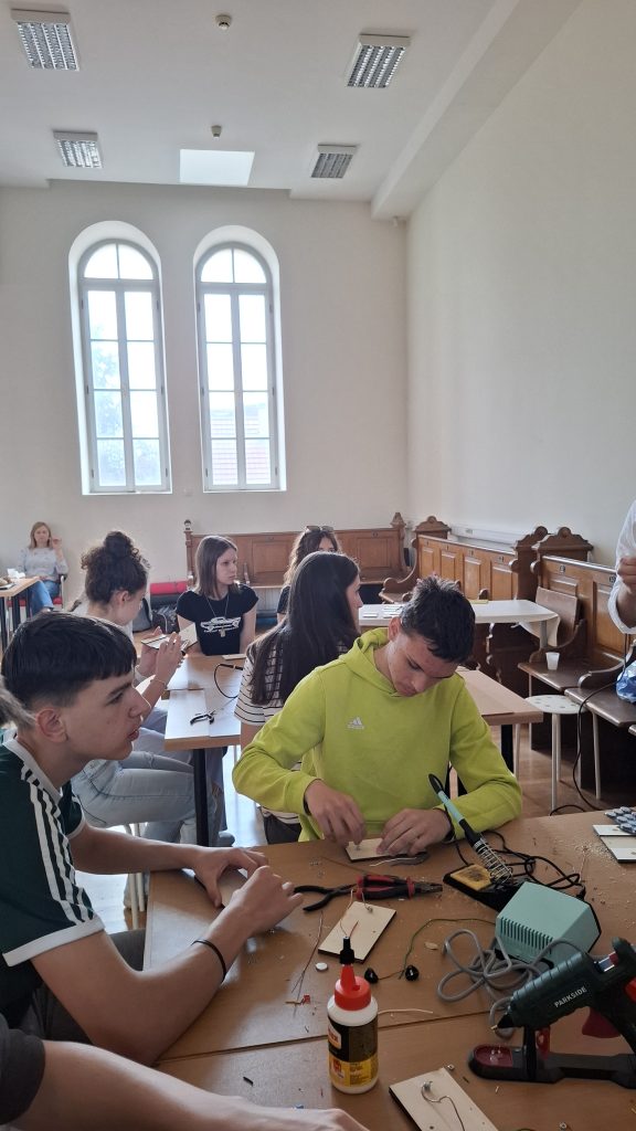 Radionicu izrade električnog labirinta vodili su Karlo Jelak i Mateo Piskač. Sudionici su izrađivali vlastitu igračku te usvajali osnovna znanja iz elektronike. Projekt je uključivao lemljenje komponenti na tiskanu pločicu, a cilj igre bio je provesti žičanu omču duž savijene žice bez dodirivanja pri čemu dodir aktivira svjetlosni signal. Svoje dovršene radove djeca su ponijela kući.